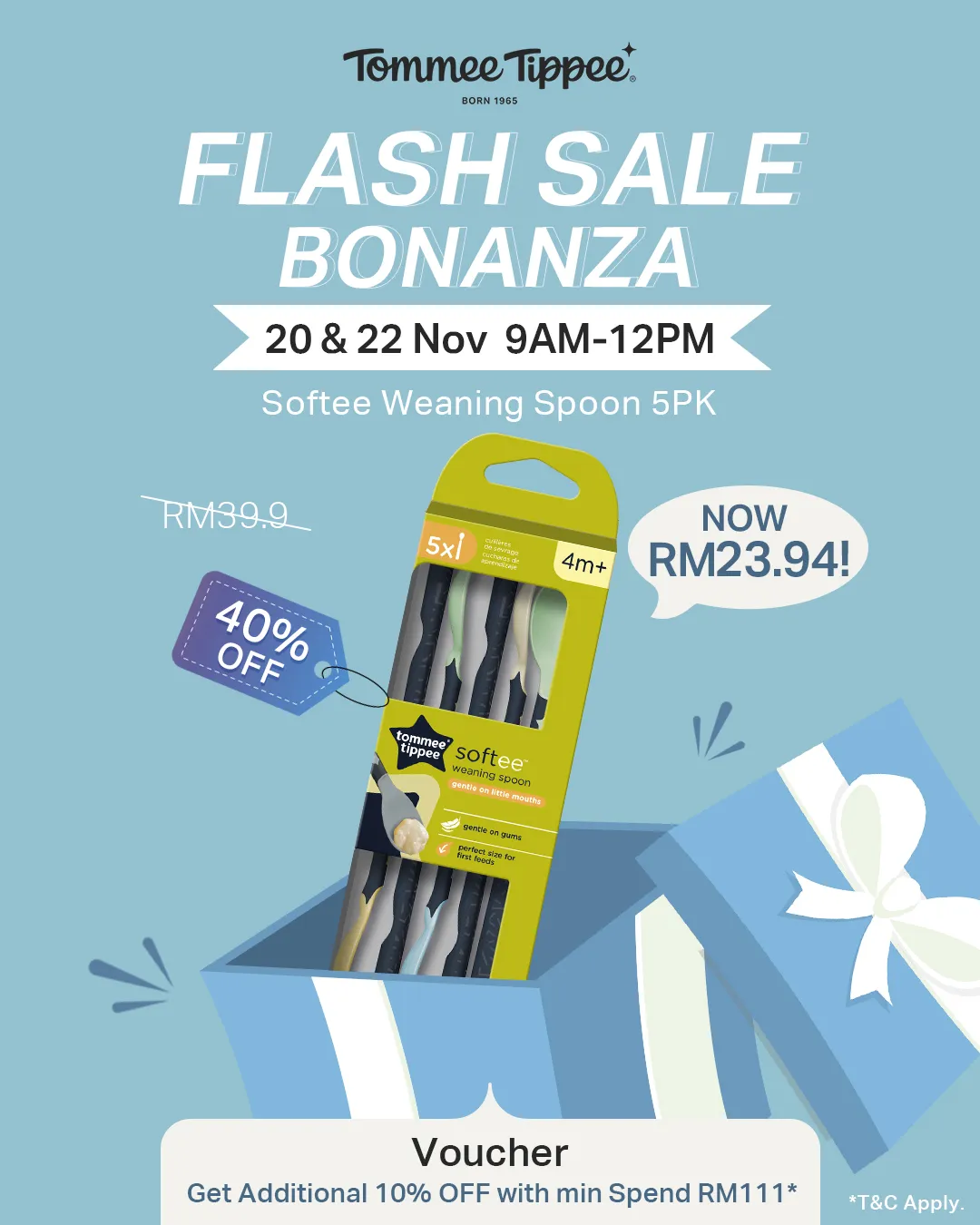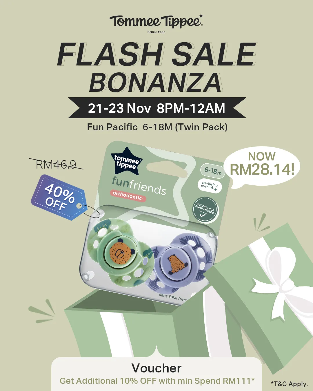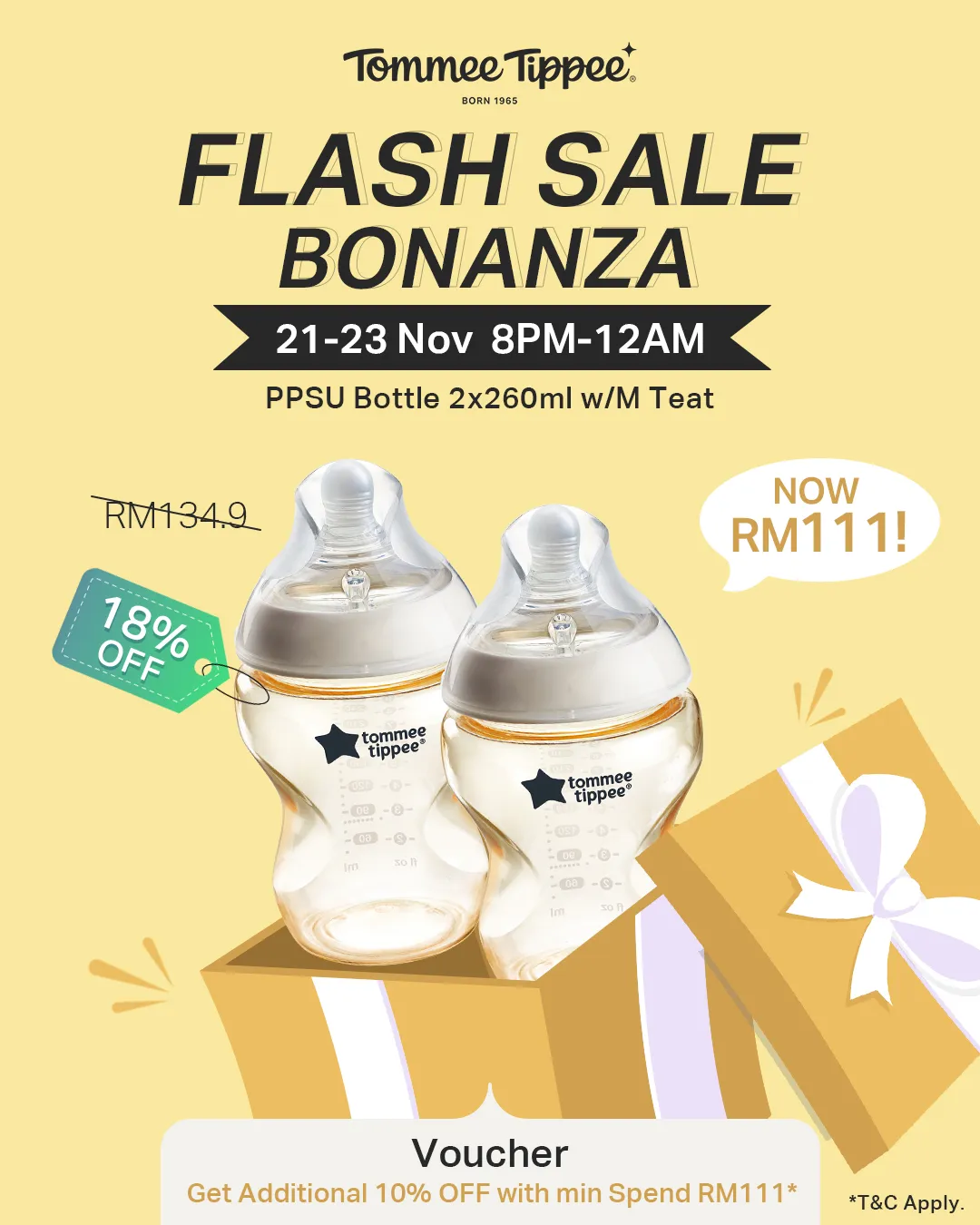 Black Friday Flash Deals are LIVE! Baby bottles, soothers, and weaning essentials now up to 42% OFF — from RM28.14 only. Flash windows run from 20–23 Nov. ⏰ Don’t miss the 9AM–12PM and 8PM–12AM drops! #tommeetippee #tommeetippeemy #flashsale #deals #parentcare #babycare #bottles #soothers #pacifiers