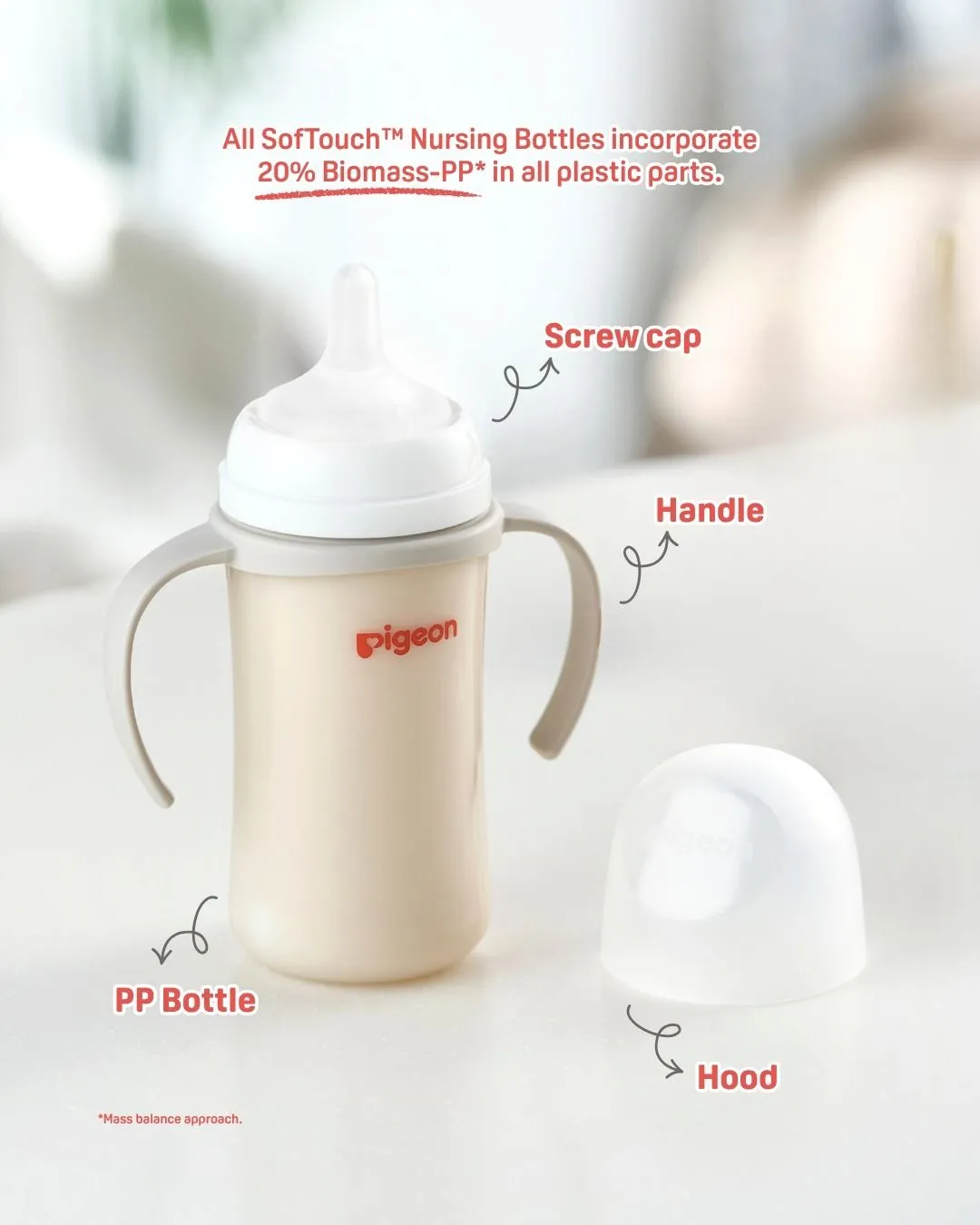 Nurturing our babies also means caring for the planet they inherit. That’s why our SofTouch™ Nursing Bottles now feature 20% Biomass-PP across all the cap, hood and handle. We're reducing the amount of virgin plastic we use, without compromising on the quality and safety of your fave bottles ♻️ 🌏 #PigeonAustralia #PigeonBabyBottles #PigeonSofTouch