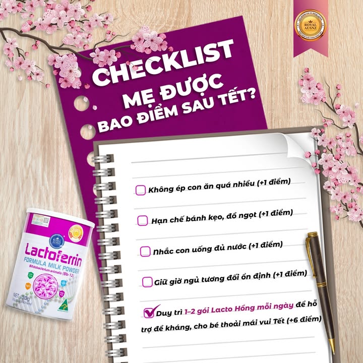 🧧 CHECKLIST: MẸ ĐƯỢC BAO NHIÊU ĐIỂM?😆 Mẹ check xem mình được bao nhiêu điểm rồi? Comment số điểm của mình để cùng xem ai là “mẹ siêu nhân” mùa Tết này nha.👇 #Sua_Hoang_Gia_Uc #Royal_Ausnz #LactoHong #Lactoferrin