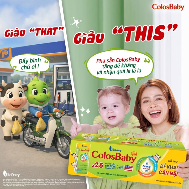 Người ta giàu “THAT” – đổ đầy bình xăng ❌ Còn Lisa giàu “THIS” – đầy năng lượng từ pha sẵn ColosBaby ✅ Chỉ cần 2–3 hộp pha sẵn mỗi ngày, Lisa có năng lượng tung tăng vui chơ và bắt trend cùng mẹ. Nhờ sữa non ColosIgG 24h cùng các dưỡng chất nổi bật, ColosBaby hỗ trợ tăng cường đề kháng, tạo nền tảng tăng cân khỏe mạnh 😍 ✅ 𝐇𝐨̣̂𝐩 𝐩𝐡𝐚 𝐬𝐚̆̃𝐧 𝐂𝐨𝐥𝐨𝐬𝐁𝐚𝐛𝐲 𝐆𝐨𝐥𝐝 𝐜𝐚̉𝐢 𝐭𝐢𝐞̂́𝐧: Với 𝐗𝟐.𝟓* lần sữa non ColosIgG 24h chứa hàm lượng kháng thể IgG cao, con đề kháng vững vàng ✅ Kết hợp cùng đạm Whey và chất béo MCT dễ hấp thu, giúp con tiêu hóa tốt hơn và tăng cân khỏe mạnh mỗi ngày. ✅ Cùng với Kẽm, Selen, Vitamin & Khoáng chất giúp hỗ trợ tăng cường đề kháng, bảo vệ con khỏi các tác nhân gây bệnh ✨ Mẹ đừng quên đang có nhiều quà tặng hấp dẫn khi mua hàng, nhanh tay chọn ColosBaby pha sẵn để bé vừa khỏe mạnh mỗi ngày, vừa có thêm quà xinh ---------------------------------- VITADAIRY - VÌ CON MẸ CHỌN 📞Tư vấn dinh dưỡng: 1900 633 559 ▶️YouTube: https://bit.ly/30hUmzG ▶️TikTok: https://www.tiktok.com/@vitadairyvietnam #ColosBaby #ColosBabyGoldCaiTien #ColosBabyGoldD3K2 #tangcuongdekhang #tangcankhoemanh