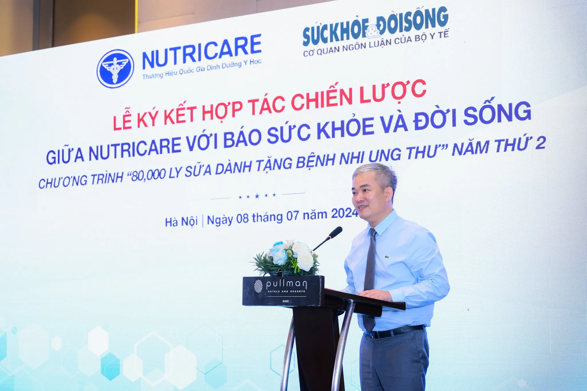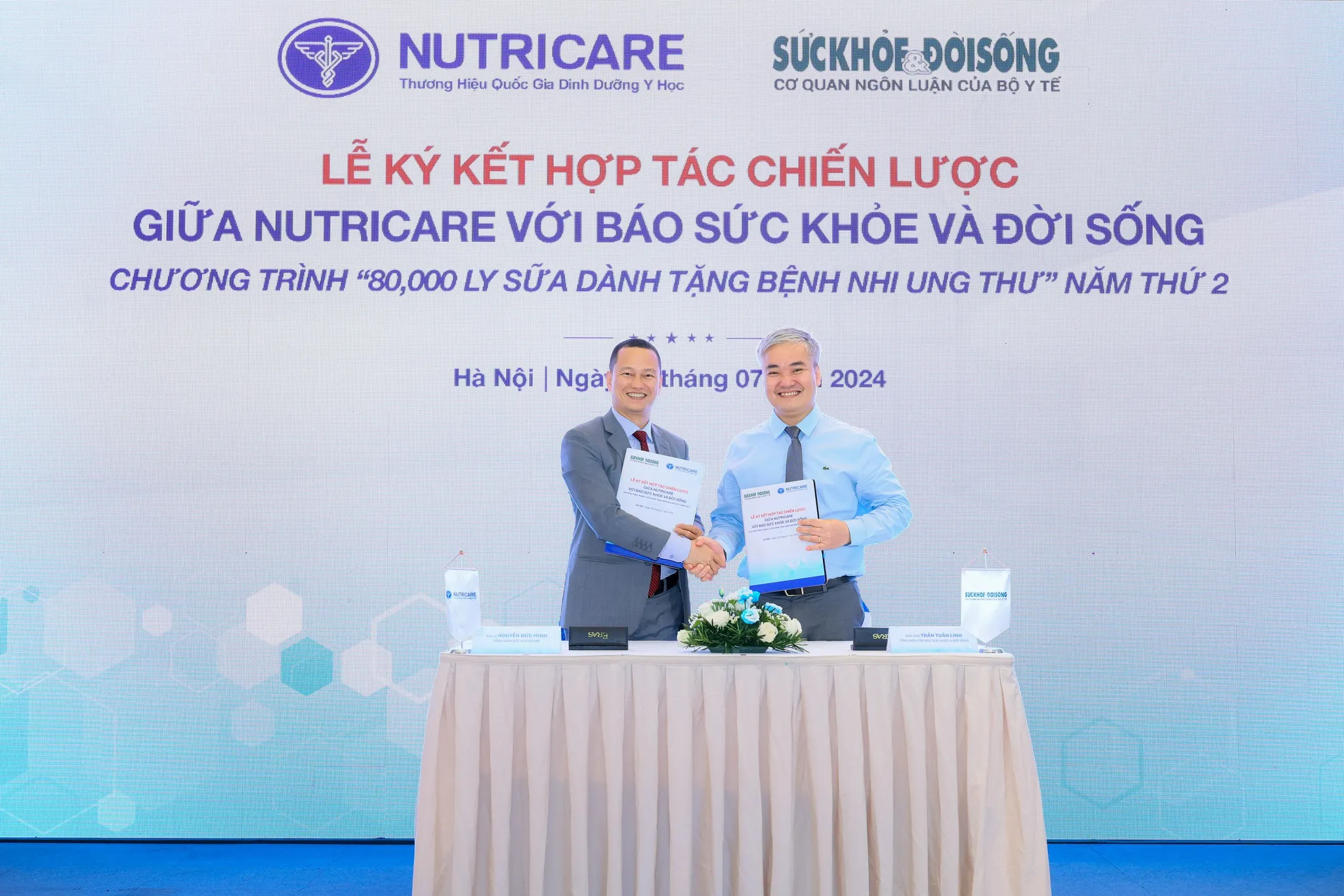 Cũng trong khuôn khổ buổi lễ, Nutricare cùng Báo Sức khỏe và Đời sống - Cơ quan ngôn luận của Bộ Y tế đã công bố chương trình hợp tác chiến lược 80,000 ly sữa dinh dưỡng dành tặng bệnh nhi ung thư” – năm thứ 2.